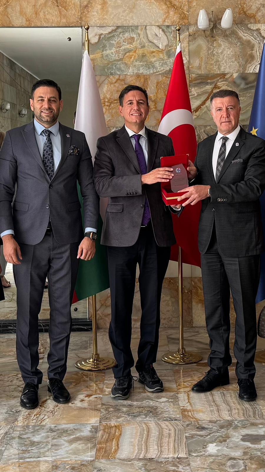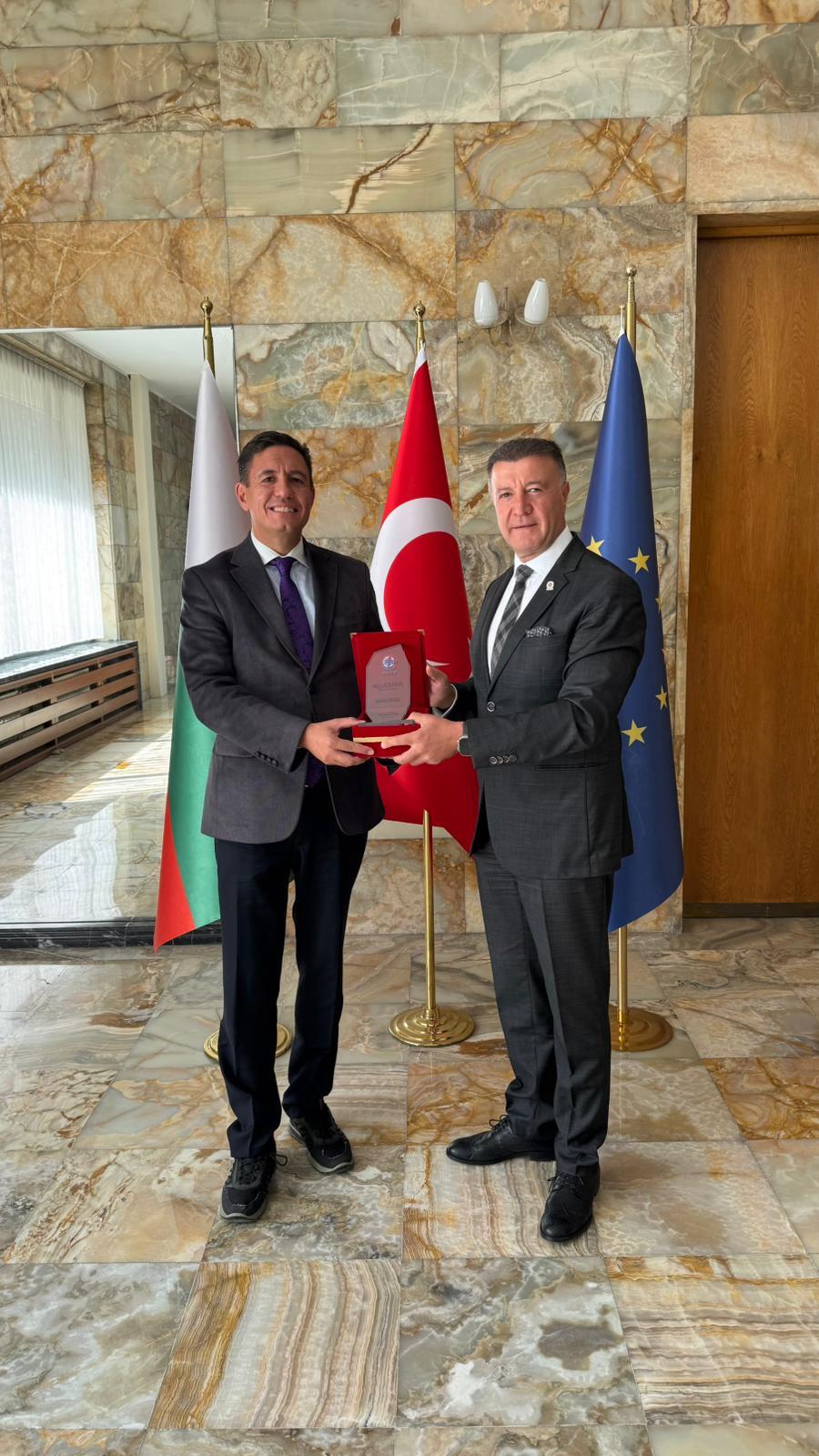 Görüşmenin sonunda, Allıoğlu, Tcholakov’a günün anısına bir plaket takdim etti. Nazik ev sahipliği ve verimli görüşme için Tcholakov’a teşekkür ederiz.